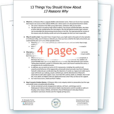 Concerns about self-harm and suicide contagion peaked when this show debuted. And although 13 Reasons Why has waned in popularity, adults’ concerns about the media young people consume will persist. This handout is your guide to having healthy conversations with youth.