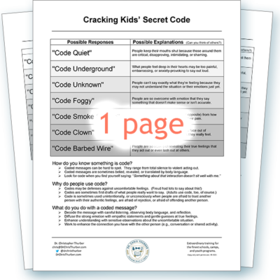 Around difficult, confusing, evocative topics, children almost always speak “in code.” The most powerful way to make your staff’s job easier is by imbuing them with the decoding skills essential for connections. This handout is best supplemented with film clips and case studies.