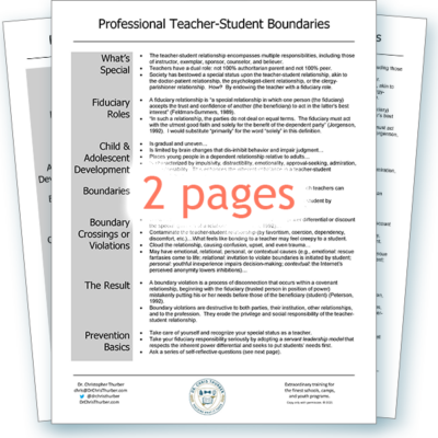 Professional educators may enter a grey area in which personal information is over-shared, touch grows inappropriate, and emotional connections creep beyond what’s comfortable. This essential handout outlines key responsibilities and boundary-preserving strategies.